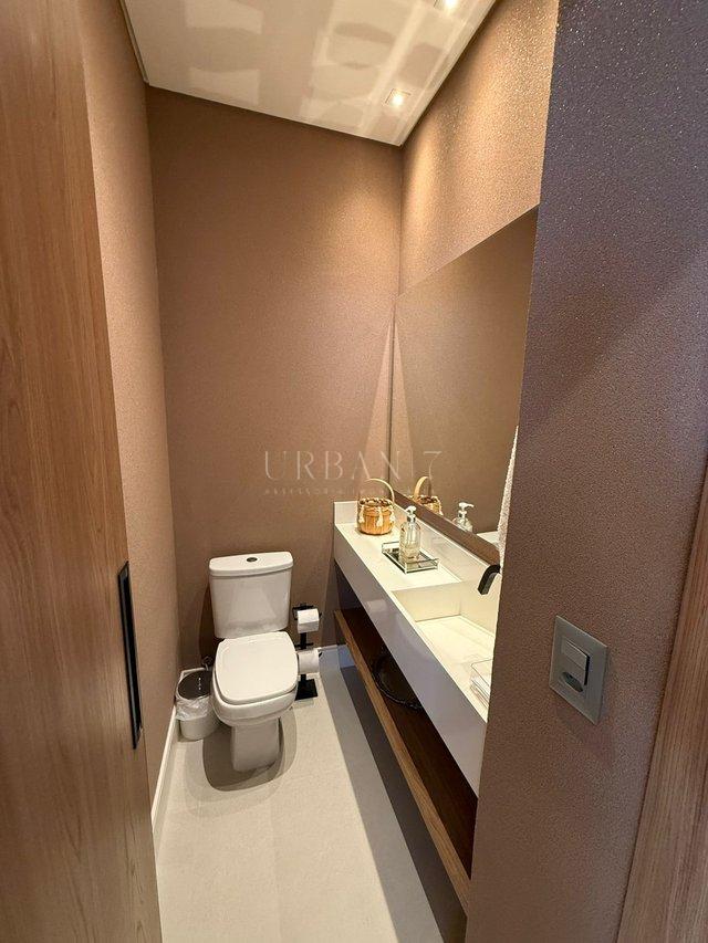 Ambientes amplos e integrados, decorados com marcenaria Kitchens, a sofisticação do Corian e móveis de luxo Breton e Natuzzi.