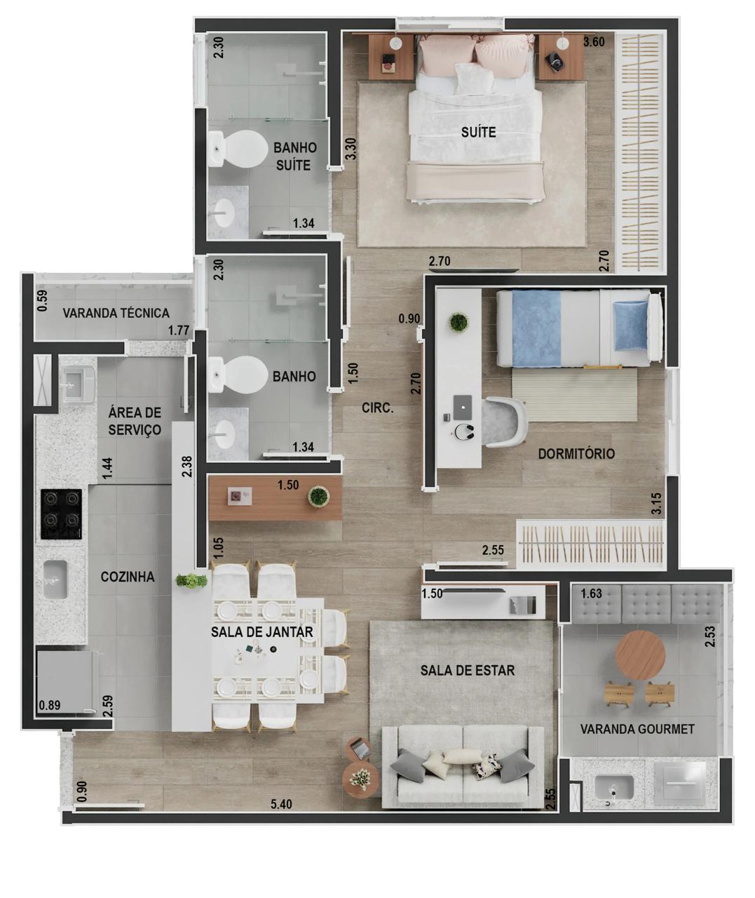 Área: 61 m² | 2 Dormitórios (1 Suíte) | 1 Vaga de Garagem 🚗