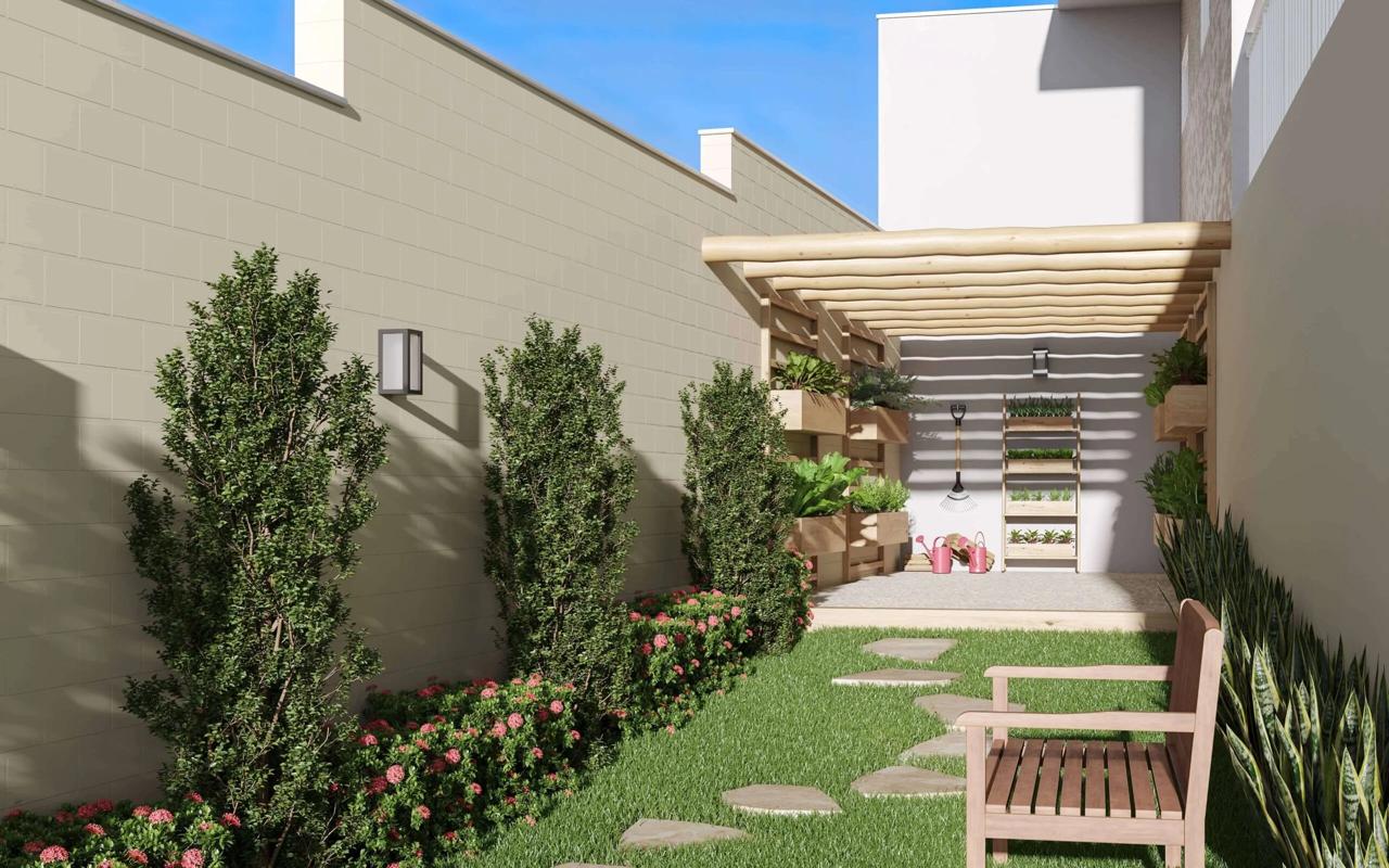 A sala ampla com dois ambientes oferece espaço e aconchego para momentos de convivência, enquanto a cozinha planejada é funcional e prática, acompanhada de uma lavanderia eficiente. Além disso, o imóvel conta com banheiro social e uma varanda charmosa para relaxar.