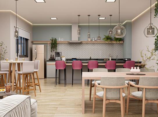 Salão de festas, espaço gourmet e churrasqueira