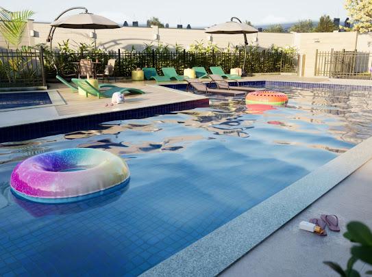 Piscina adulto e infantil com deck