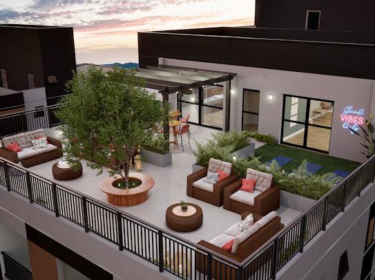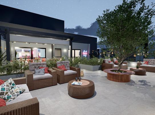 Rooftop panorâmico com área de convivência