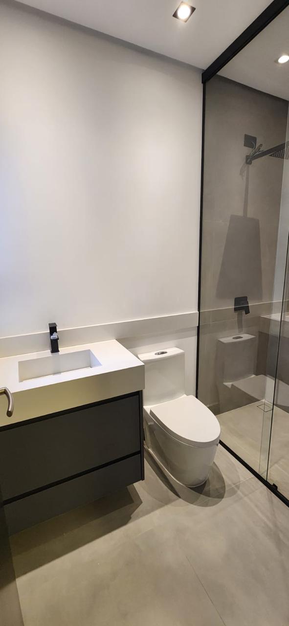 - Box de vidro até o teto, trazendo um toque de sofisticação