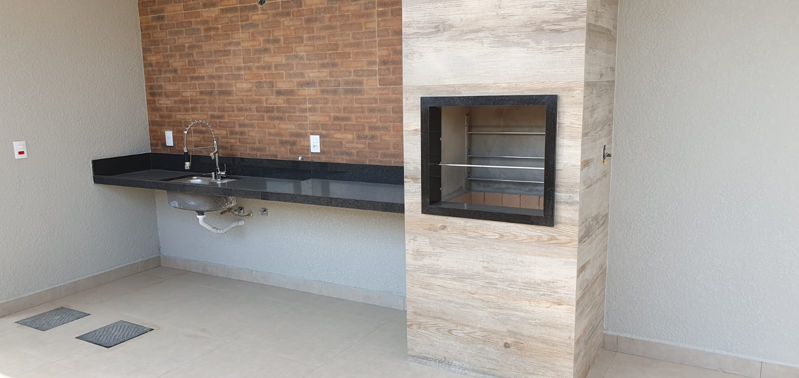 Área gourmet com pia + bancada de 3 metros, churrasqueira e torneiras gourmet, ideal para confraternizações e momentos de lazer com amigos e família