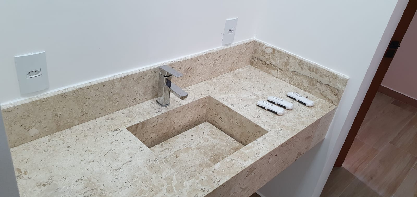 Acabamento em mármore Travertino e São Gabriel em toda a casa, dando um toque de luxo e requinte