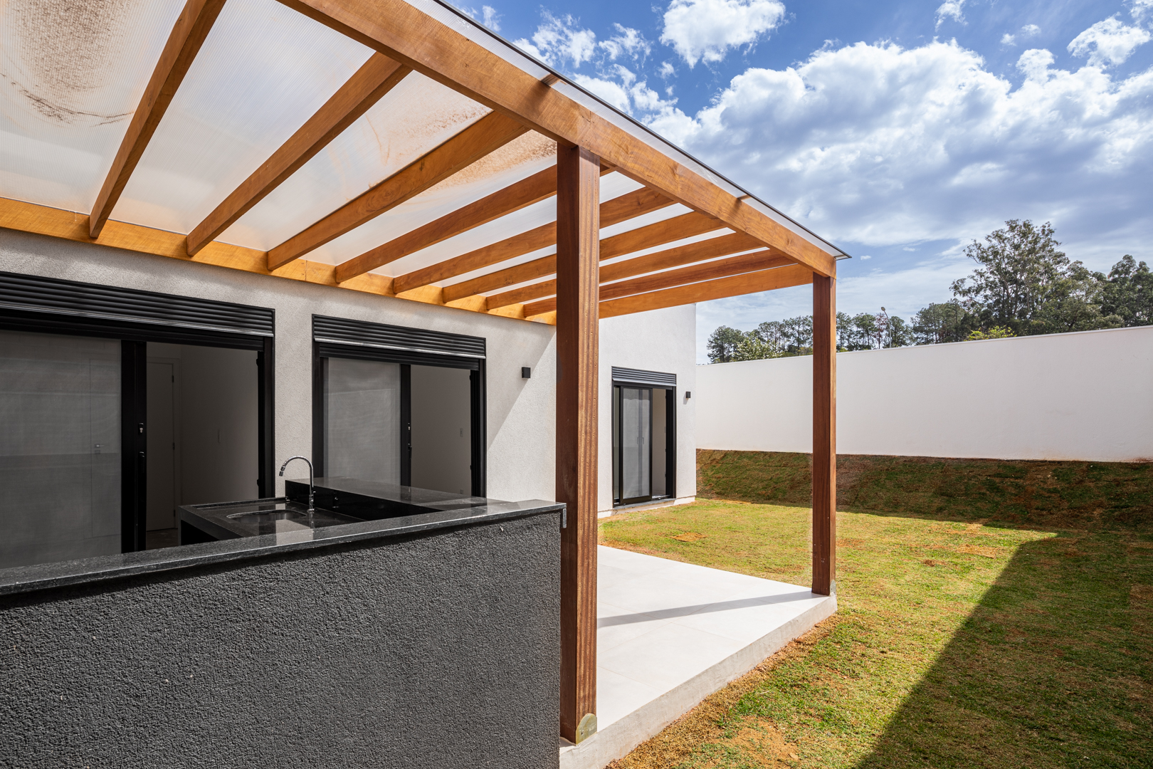 A casa oferece integração entre os espaços sociais, proporcionando bem-estar, além de excelente potencial para área gourmet e lazer.