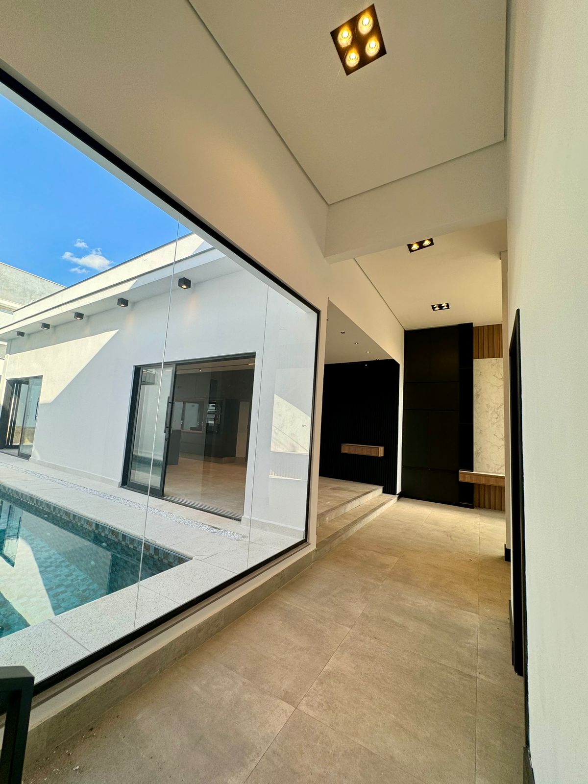 - Sala com pé direito alto e conceito aberto, integrada à área gourmet , com churrasqueira e espaço para momentos de lazer