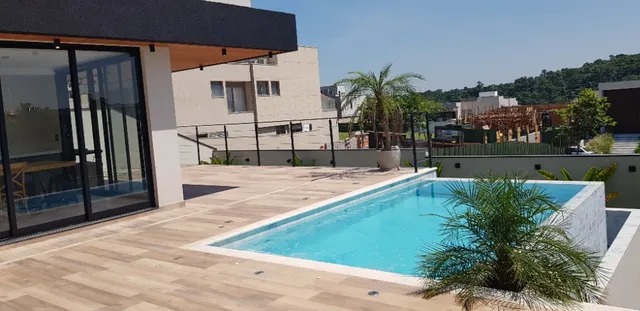 Piscina com borda infinita e aquecimento solar, perfeita para lazer em todas as estações