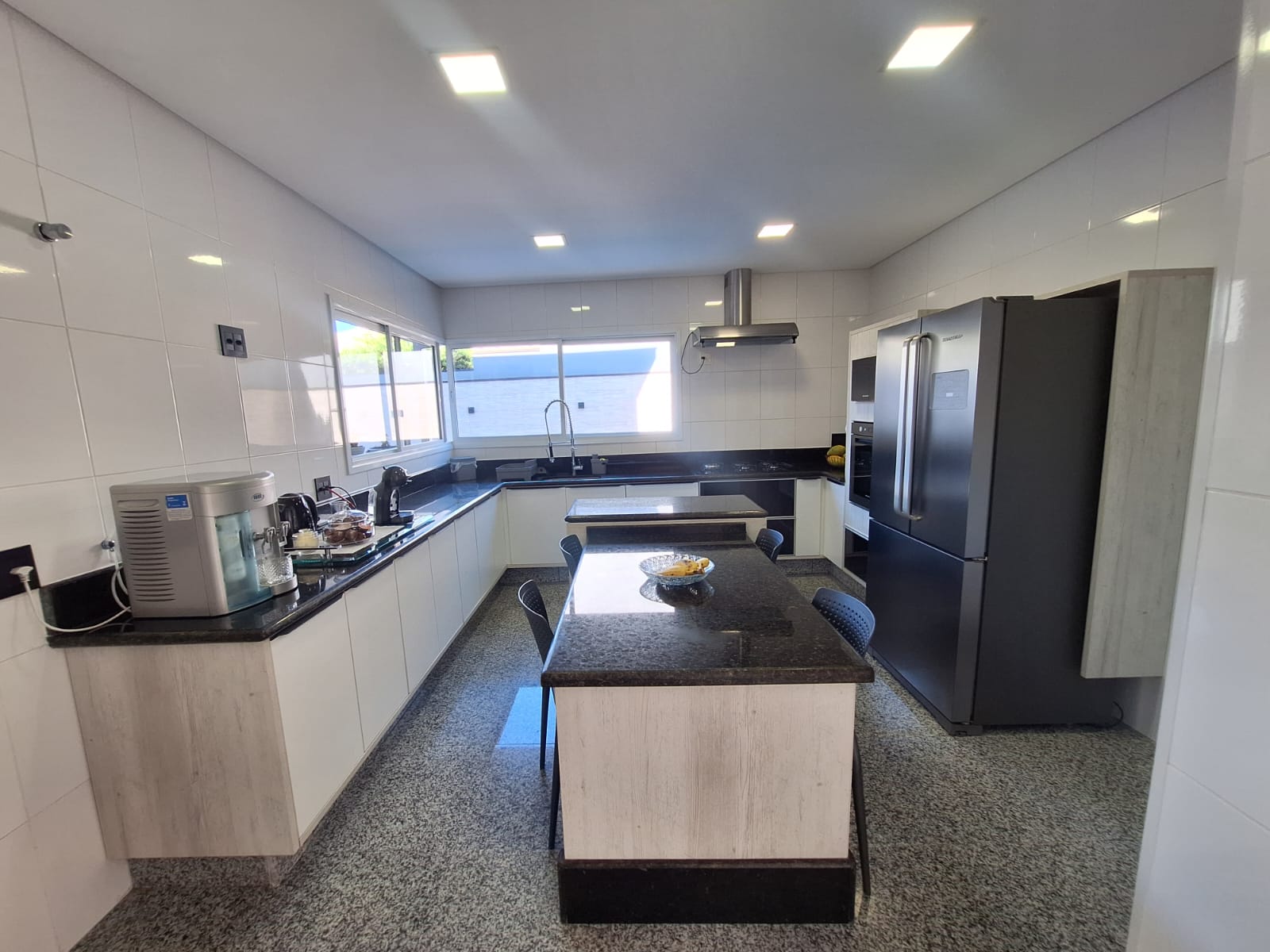 Acabamentos nobres: granito preto e porcelanato de alto padrão