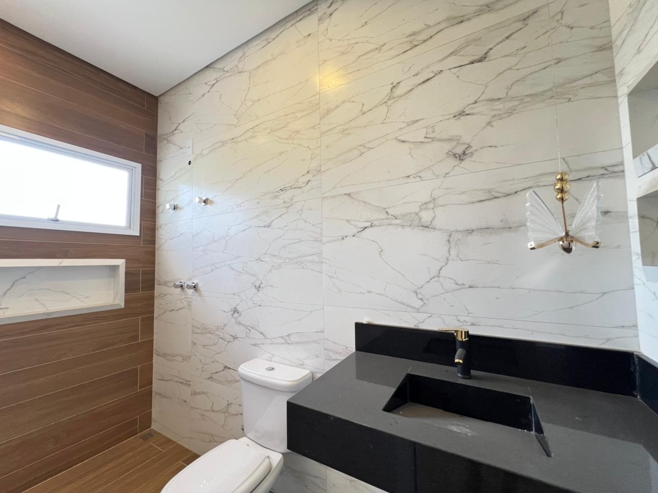 Residência moderna que combina design contemporâneo, integração dos ambientes e excelente iluminação natural. A casa já conta com infraestrutura para placas fotovoltaicas, ar-condicionado, câmeras e sistema de som ambiente, garantindo praticidade e alta eficiência.