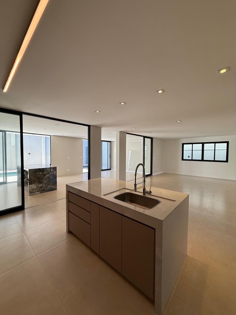 Ambientes integrados: sala de TV, jantar, cozinha e espaço gourmet