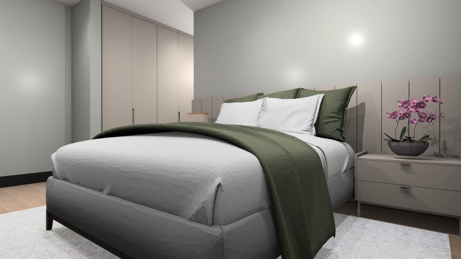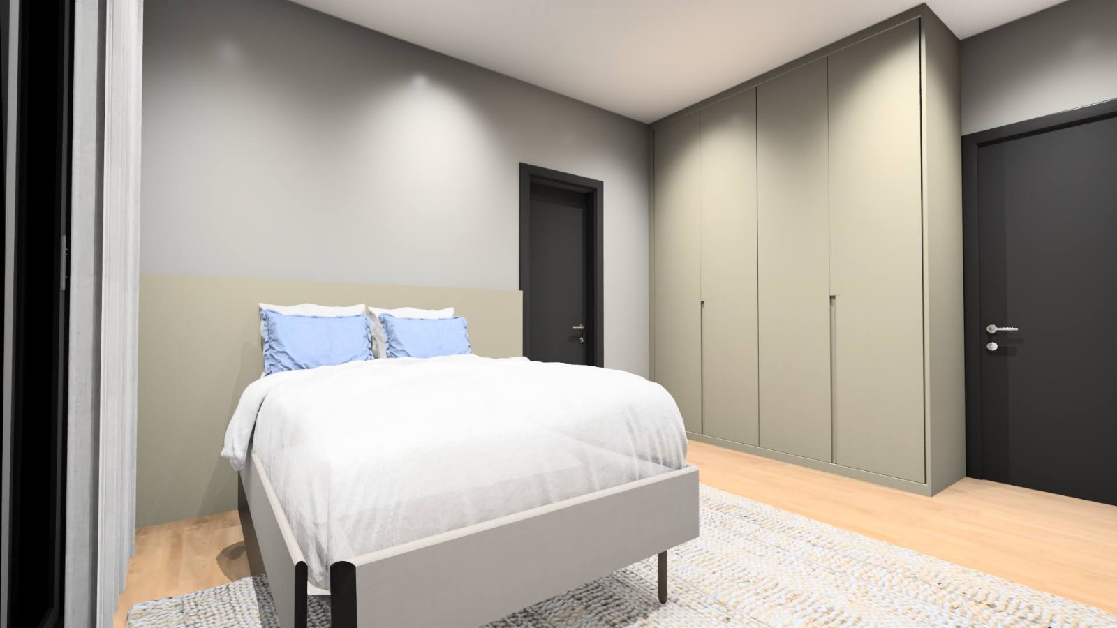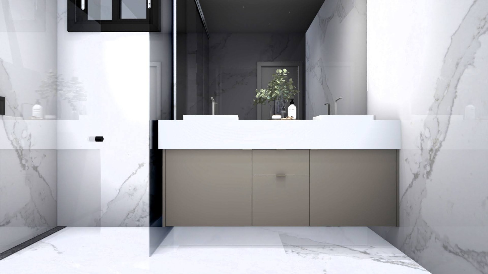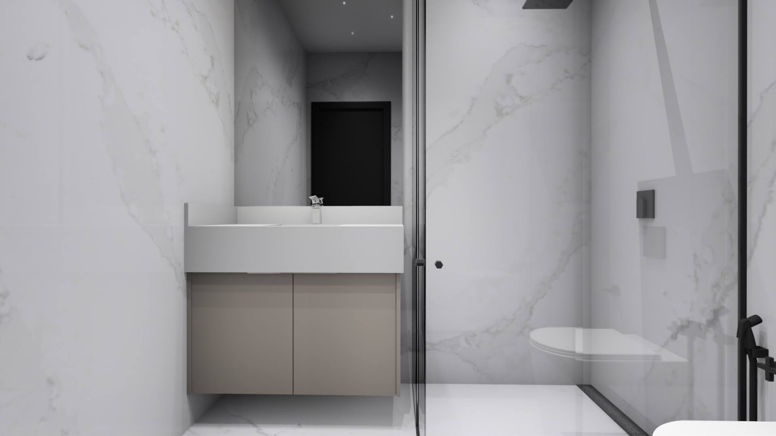 Piso porcelanato Calacata nas áreas sociais e piso vinílico nos dormitórios