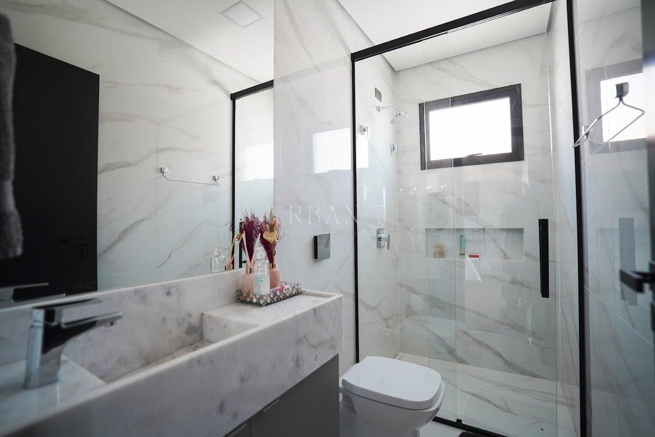 Sobrado de alto padrão à venda no Condomínio Alphaville I Votorantim, com projeto contemporâneo, acabamento premium e ambientes integrados que proporcionam conforto, elegância e praticidade.