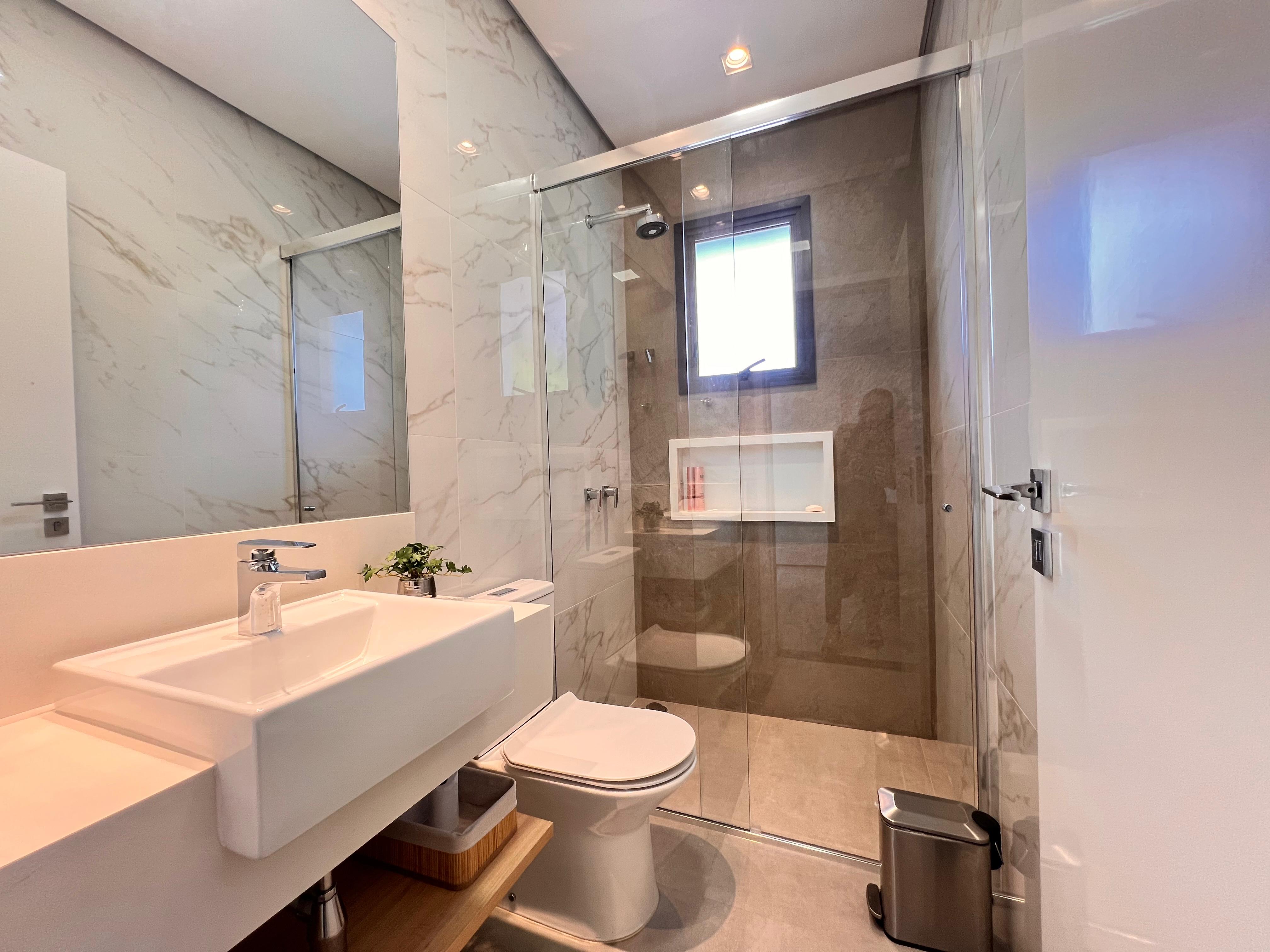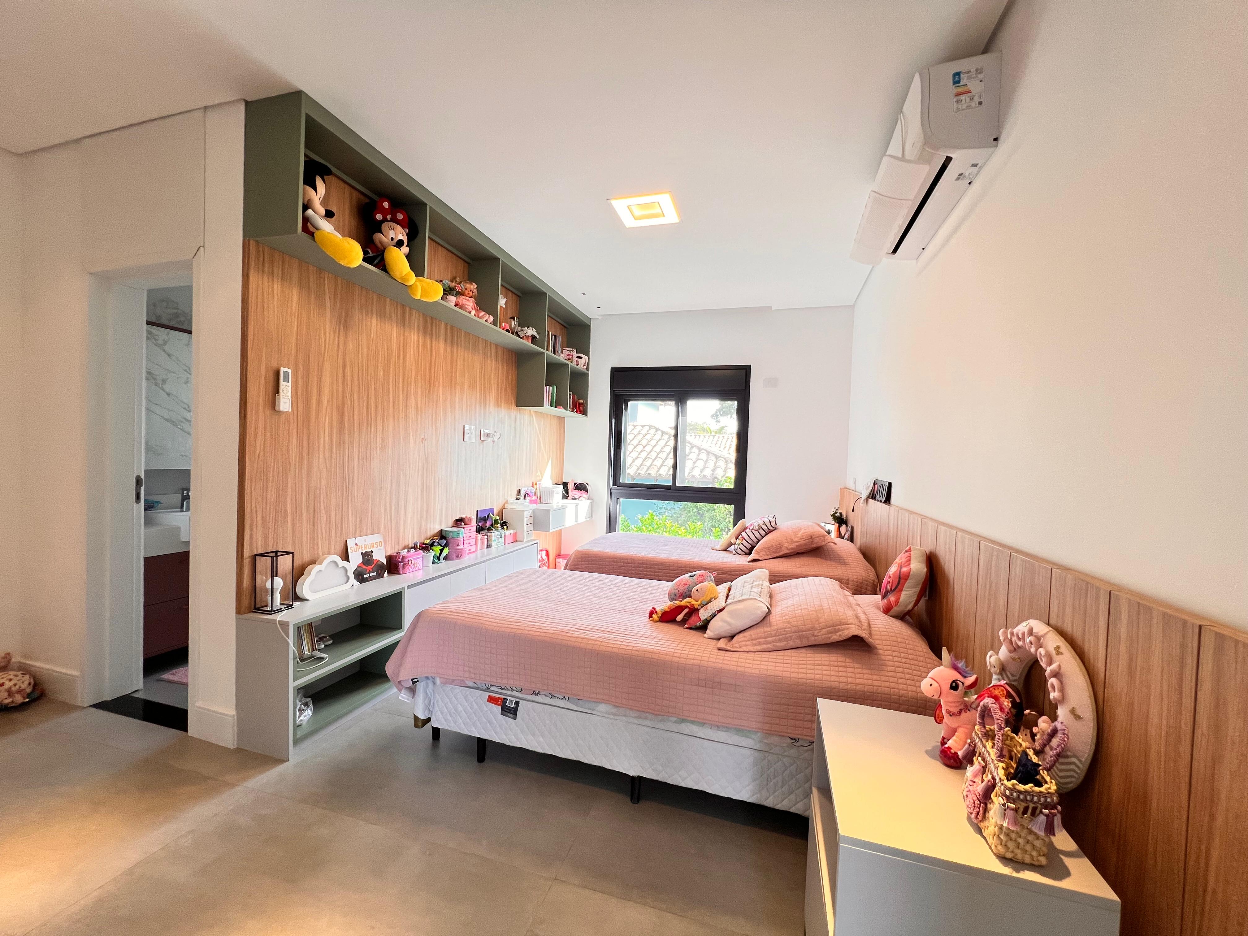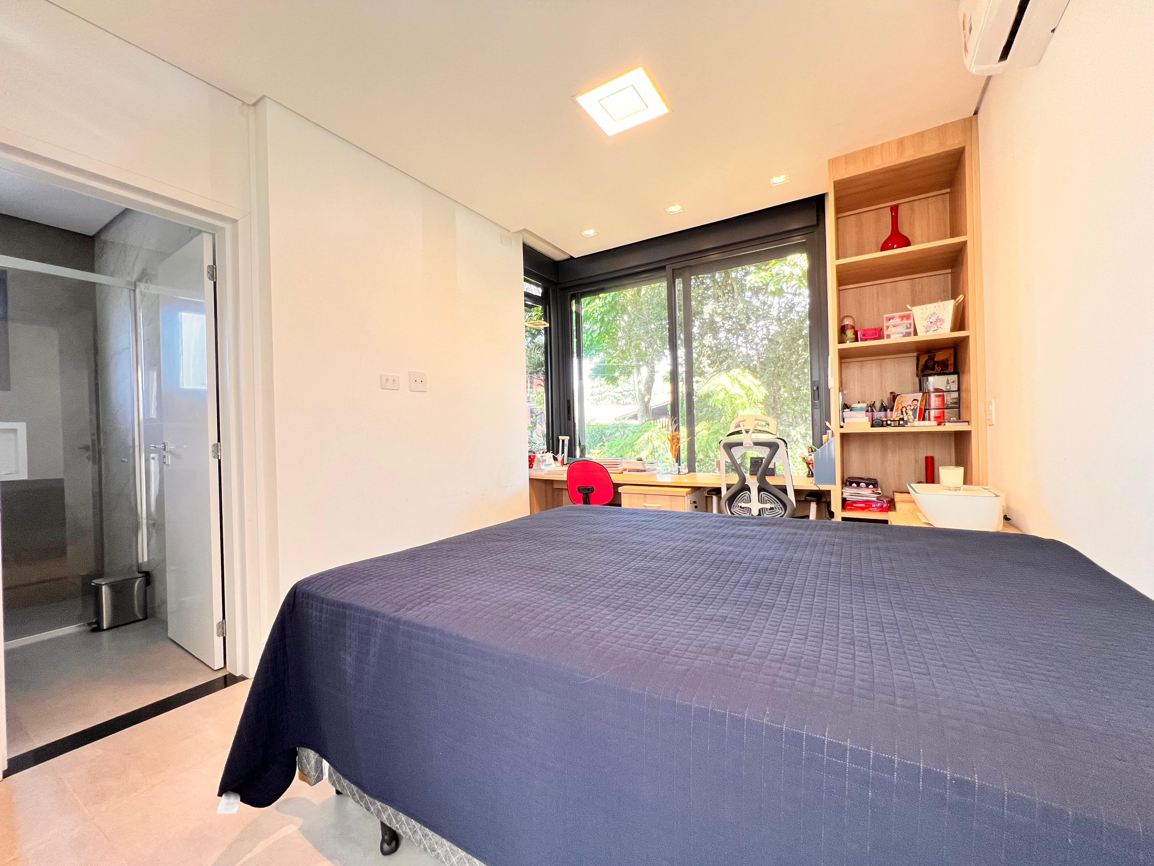 2 suítes no piso superior, incluindo uma suíte máster com closet, jacuzzi e janelas automatizadas com blackout;