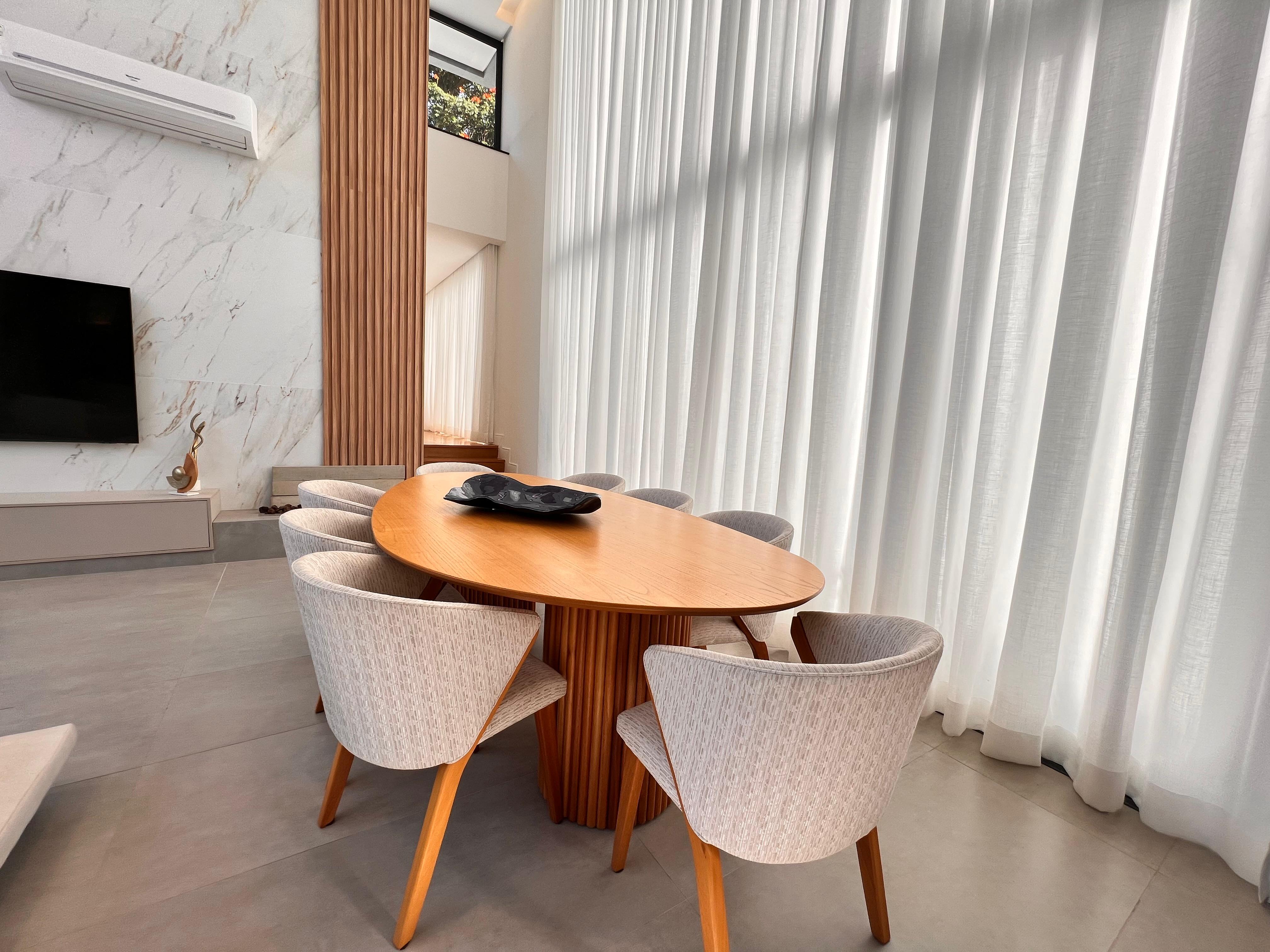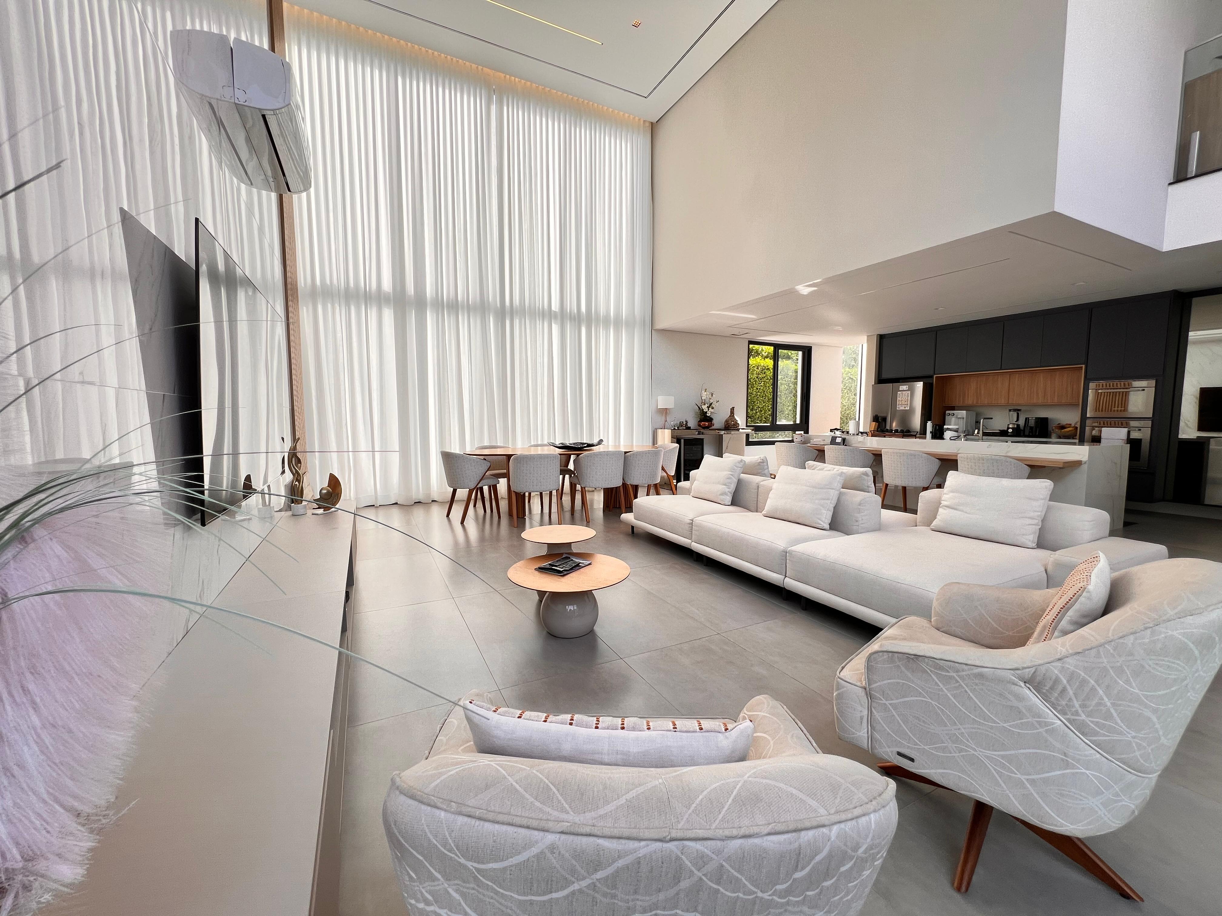 Sala de estar com dois ambientes amplos, equipada com ar-condicionado e iluminação em LED em todos os cômodos, proporcionando um ambiente sofisticado e acolhedor;